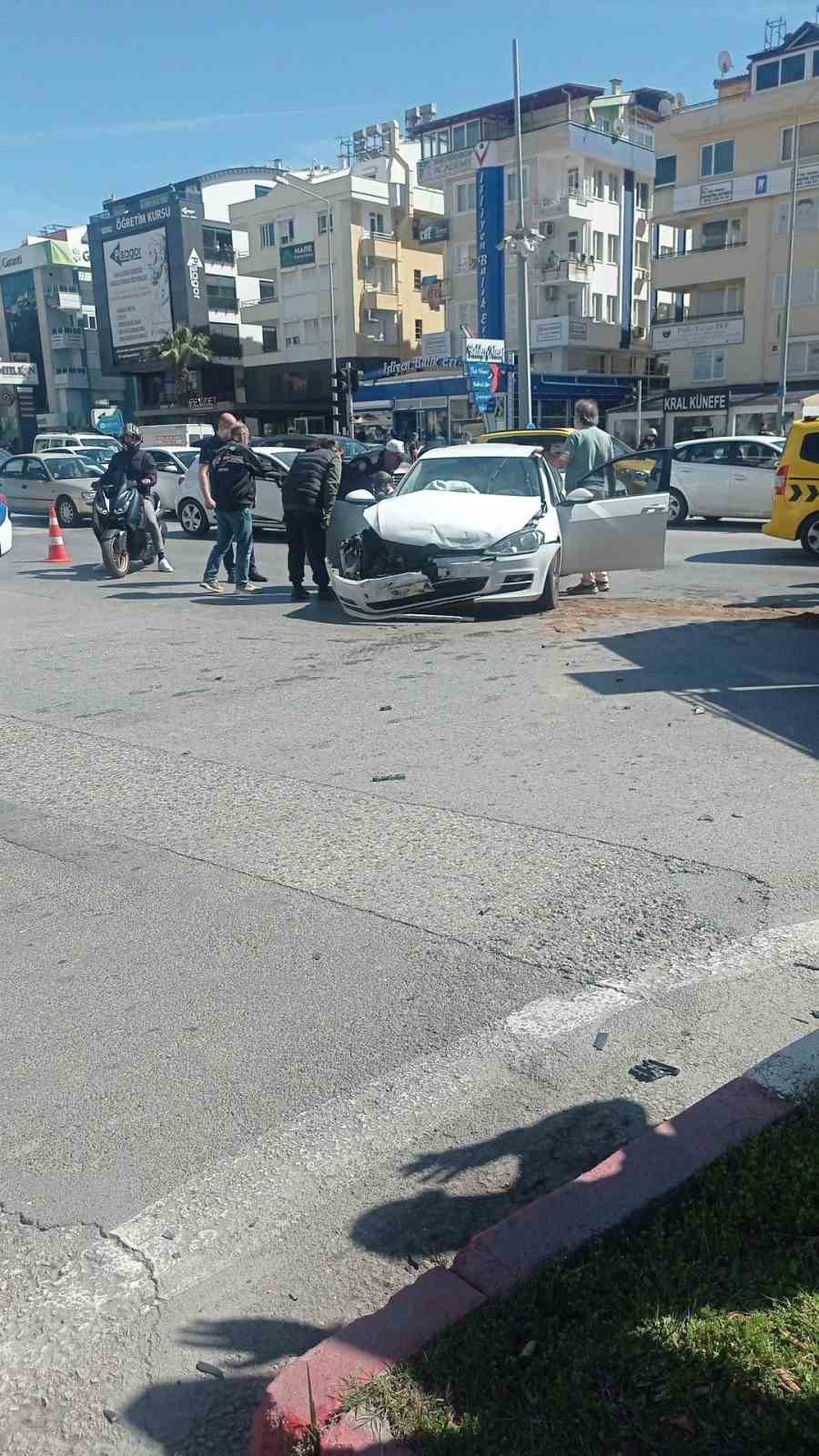 Kaza, saat 13.00 sıralarında Konyaaltı İlçesi Gürsu Mahallesi Atatürk Bulvarı üzerinde meydana geldi. Edinilen bilgilere göre, karşı şeritlerden seyir halinde olan Samet Ö. (30) idaresindeki 34 ZU 3067 plakalı ticari araç ile Arzu D. (46) yönetimindeki 07 BHM 098 plakalı Volkswagen Polo otomobil, kavşakta çarpıştı. Çarpışmanın etkisiyle savrulan ticari araç yan yattı.