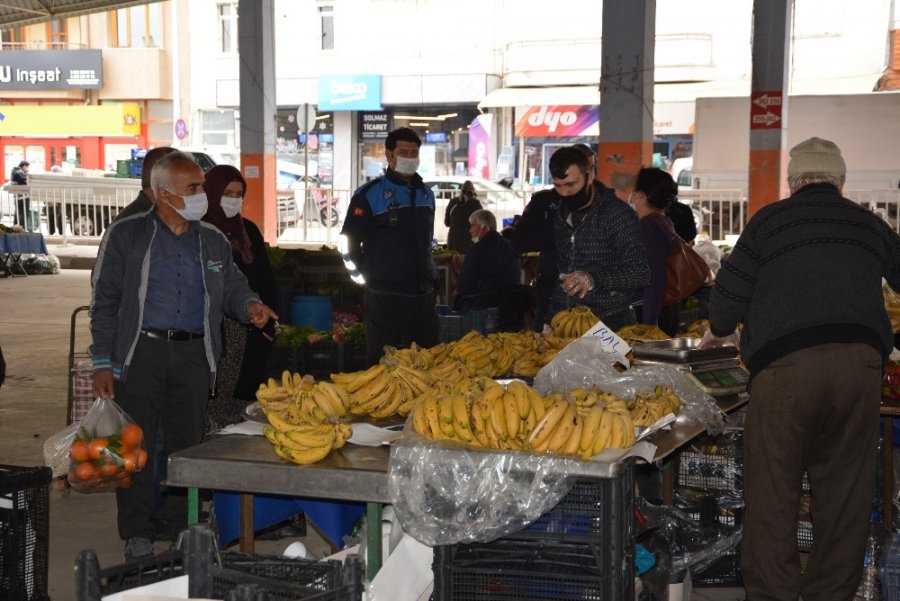 Zabıta ekiplerin sosyal mesafeye uymaları konusunda sürekli uyarılarda bulundu. Zabıta ekipleri, vatandaşlara alışverişlerini 15 dakikada bitirmeleri konusunda uyarıda bulundu. Maskesiz gelenlere ise maske dağıtıldı.