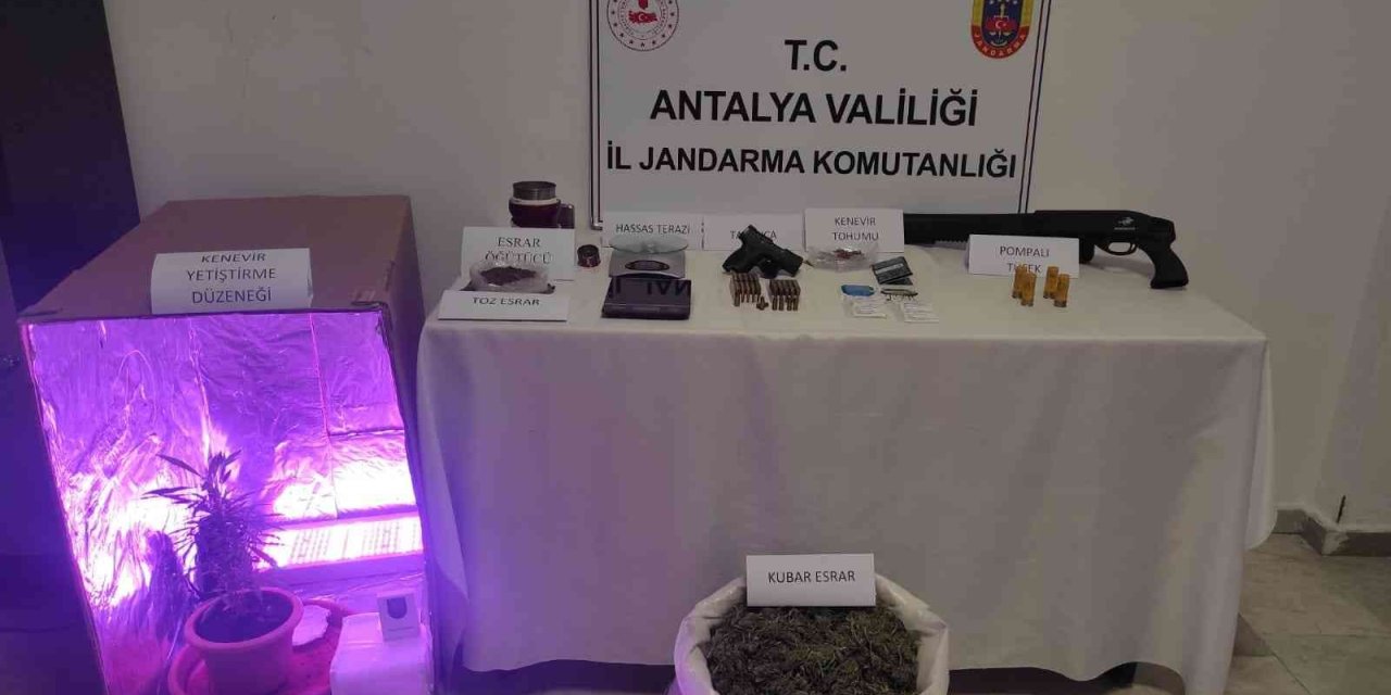Antalya'da jandarma kuvvetlerinin bir ikamete gerçekleştirdiği operasyonda; 3,6 kilo kubar esrar, 118 gram toz esrar ve 1 kök kenevir bitkisi ele geçirdi. Olayla ilgili 1 şüpheli şahıs gözaltına alındı.