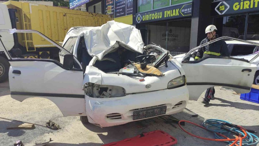 Park halindeki araca çarparak durabilen araç içerisindeki sürücü itfaiye ve vatandaşların yardımıyla sıkıştığı yerden çıkarıldı.