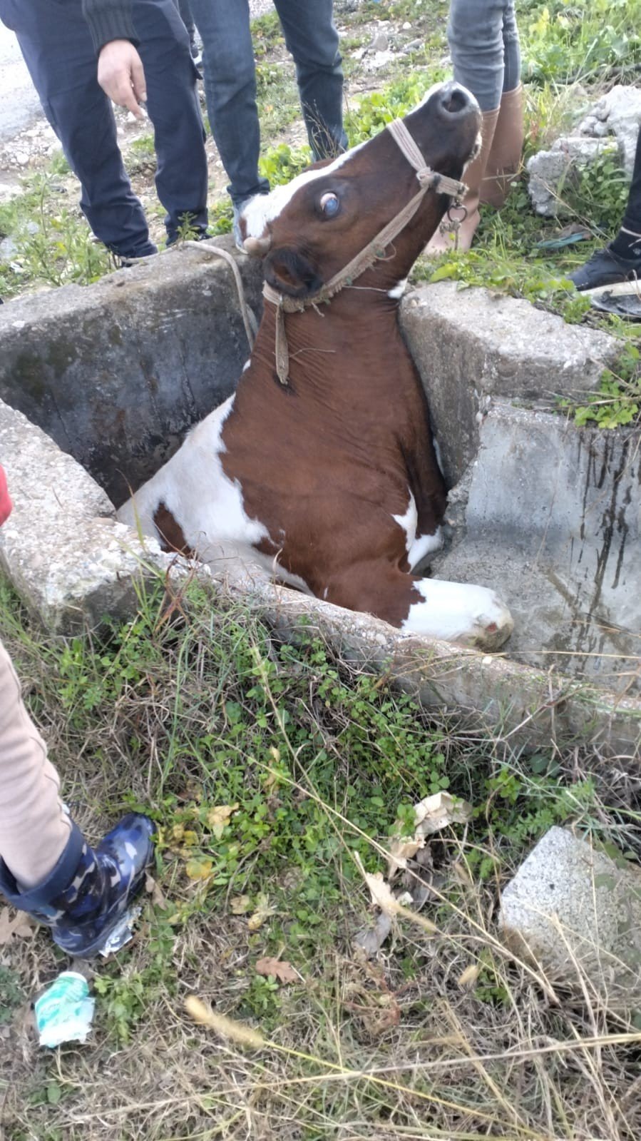 Alınan bilgiye göre olay, Serik ilçesine bağlı Belpınar Mahallesinde meydana geldi. Sulama kanalı çukuruna düşen ineğin kurtarılması için itfaiye ekiplerine haber verildi. Ekipler tüm müdahalelere rağmen ineği bulunduğu yerden çıkartamadı. Bunun üzerine iş makinası çağrıldı. Kepçeye bağlanan halat yardımıyla inek, sıkıştığı kuyudan çıkartılarak sahibine teslim edildi.