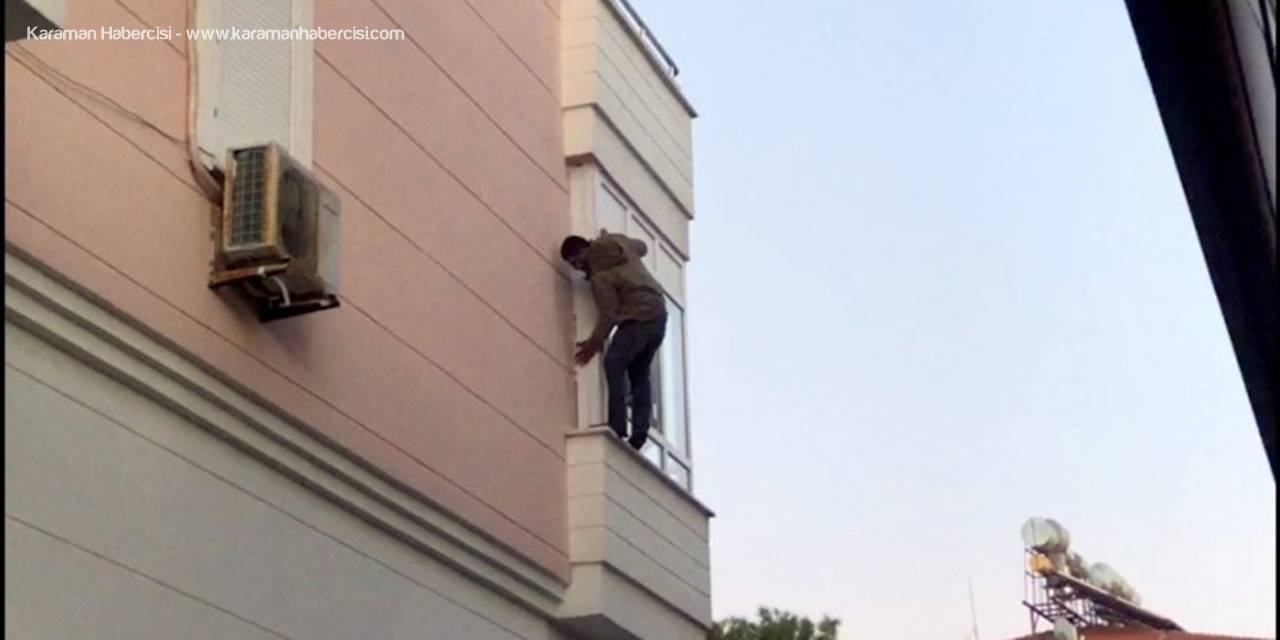 Alanya'nın Avsallar Mahallesi'nde 5 katlı bir apartmanın birinci katının kapalı balkonunda slikon çeken ustayı görenler hem jandarmaya haber verdi hem de cep telefonlarıyla o anları görüntülendi. Pvc ile kapatılan balkonun dışına çıkarak balkonun kenar betonlarına basıp eliyle açık tuttuğu pencereden destek alan usta çevredekilerin ikazlarına da kulak asmadan işine devam etti.