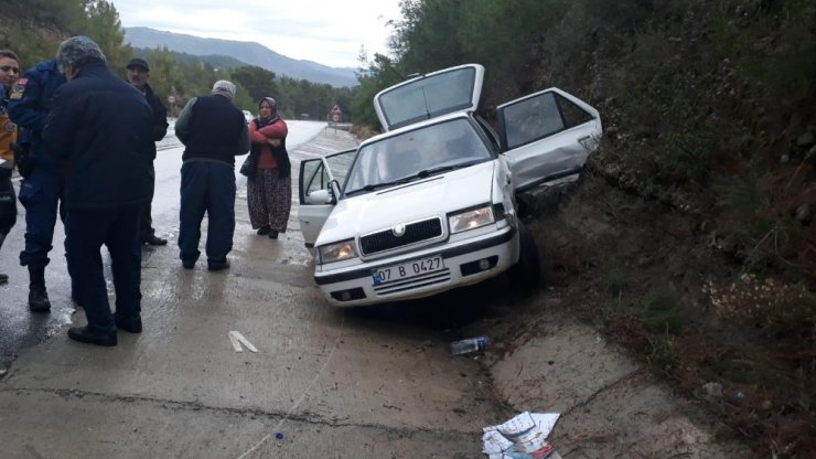 Edinilen bilgiye göre, Fevzi B.'nin kullandığı 06 CNT 01 plakalı ticari araç, Manavgat-Akseki D-695 Karayolu Taşkesiği Mahallesi'nde Mustafa A.'nın kullandığı 07 B 0427 plakalı otomobille çarpıştı. Çarpışmanın şiddetiyle araçlar yol kenarında bulunan yağmursuyu tahliye kanalına sürüklendi.