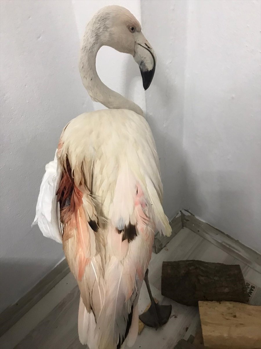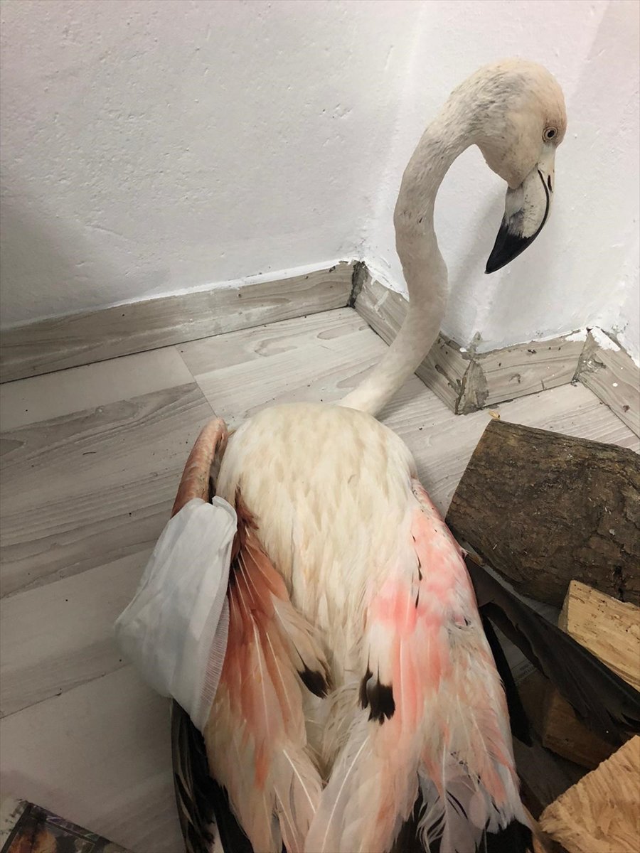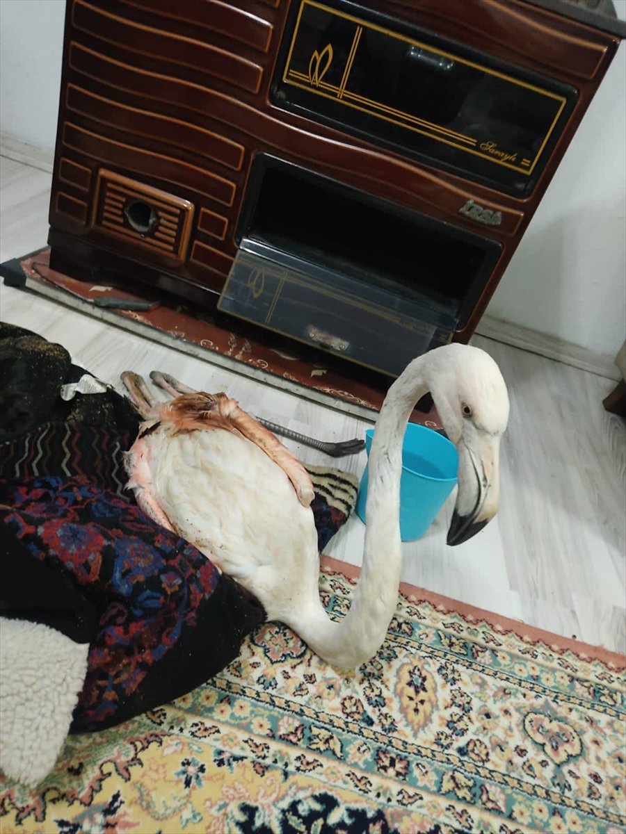 Şevval Merdun ise yaralı filamingoyu üşümesin diye montuna sarıp, eve getirdiklerini ifade etti.
