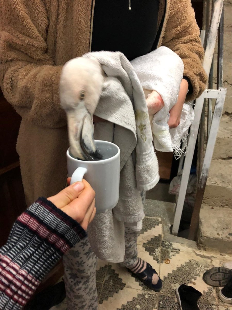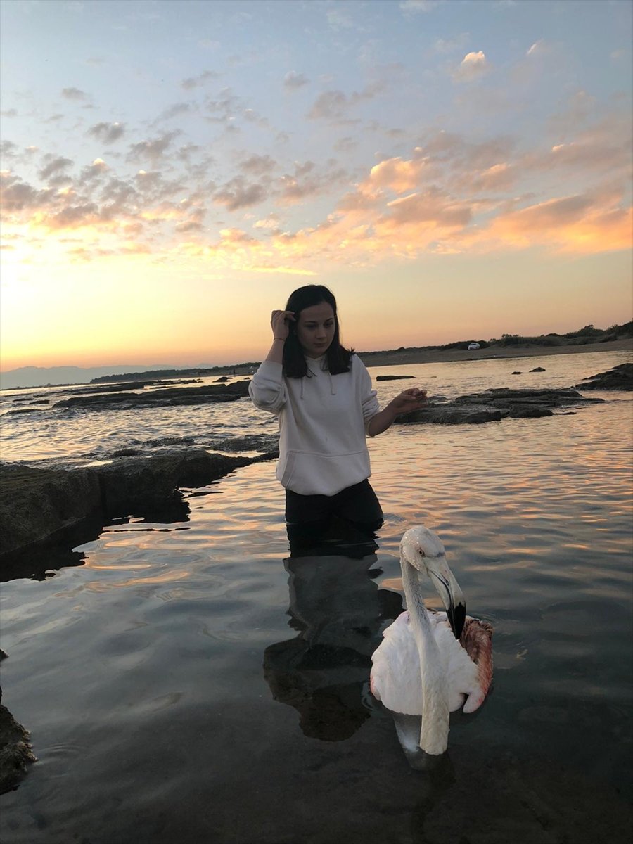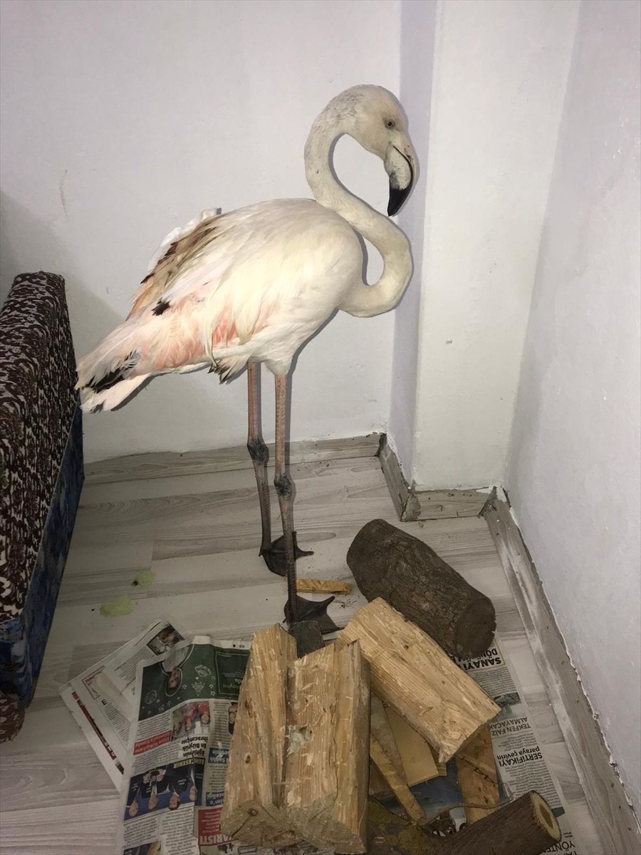 Şevval Merdun ise yaralı filamingoyu üşümesin diye montuna sarıp, eve getirdiklerini ifade etti.