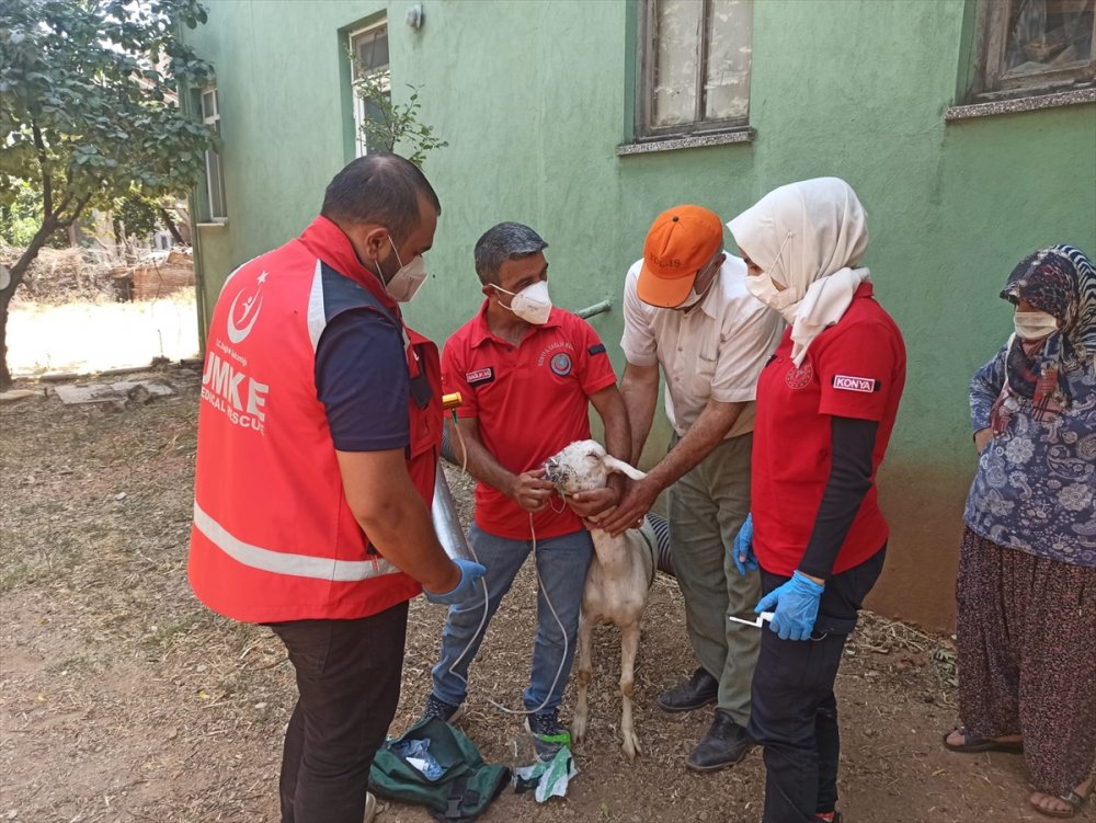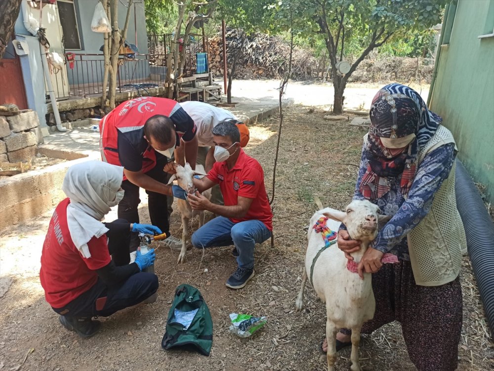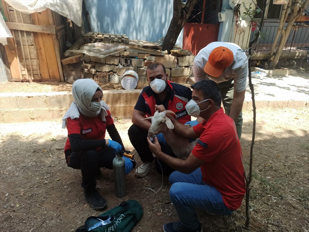 Keçilere, UMKE ekibinde görev yapan ve aynı zamanda veteriner sağlık teknikerleri olan Alparslan Ercan ile Turan Sevim tarafından müdahale edildi.