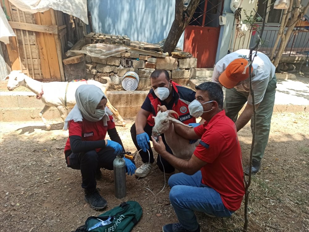 Antalya'nın Alanya ilçesinde orman yangınında dumandan etkilenen keçilere UMKE ekipleri yardım etti.