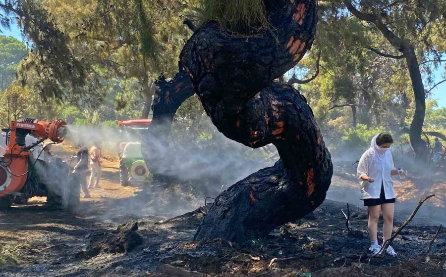 Antalya'nın Muratpaşa çıkan orman yangını, havadan ve karadan müdahale sonucu yaklaşık 4 saatlik çalışmanın ardından kontrol altına alındı. Yangın sonrası bir vatandaşın ormanın içinde yer alan tek katlı evi küle dönerken, bir genç kadın da her gün koşu yaptığı ormanlık alandaki yanan ağaçlara uzun süre bakıp dokundu. Kalp rahatsızlığı olan klimacı bir genç ise, işe giderken yangını görüp alevlerin arasına daldı.