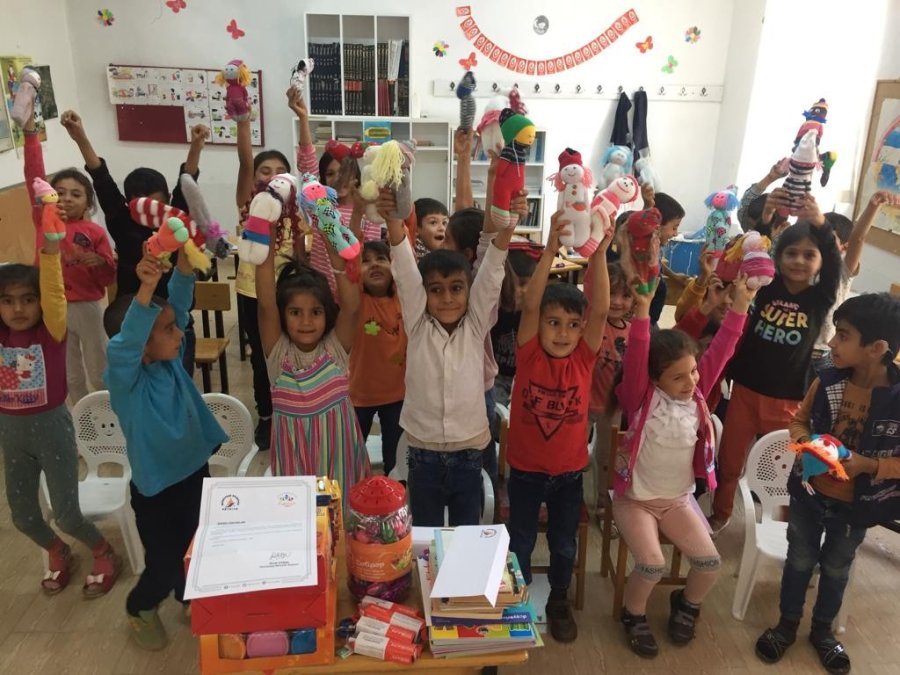 Antalya Muratpaşa Belediyesi Adalya Vakfı Engelsiz Kafe'de, özel çocukların iplerden saç, düğmelerden göz dikerek oyuncağa dönüştürdüğü çoraplar kırtasiye malzemeleriyle birlikte Adıyaman'ın Besni ilçesindeki Hacıhalil İlkokul'una gönderildi.