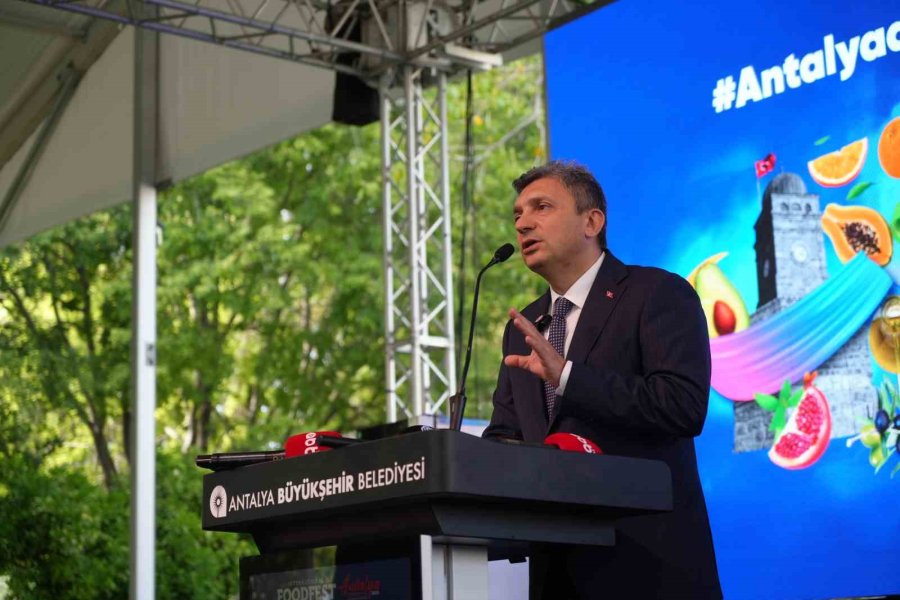 Antalya Büyükşehir Belediye Başkanı Muhittin Böcek, göreve geldikleri 2019 yılından bu yana kültür ve sanatı da Antalya'nın önemli değerleri arasına katmak için çalıştıklarını belirterek, "Göreve geldiğimizde sadece Altın Portakal ve Piyano Festivalimiz vardı. Bugün FoodFest ile birlikte Yörük Türkmen Festivali, Hobifest, Yeşilçam Günleri, Kitap Fuarı gibi çok sayıda uluslararası etkinliği Antalya'mıza kazandırdık. FoodFest ile Antalyamızın lokomotifi olan tarım ve turizmi, gastronomi çatısı altında birleştiriyoruz. Çiftçimizin alın teriyle yetiştirdiği ürünleri, dünya mutfağında başarısını kanıtlamış şeflerle buluşturuyoruz. Antalya'mız, tropikal ürünleri ve 19 coğrafi işaretli lezzetiyle büyük bir değer sağlamaktadır" dedi.
