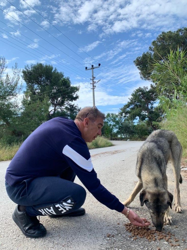Antalyalı iş adamı Şahin Kırbıyık, sokağa çıkma kısıtlamasının olduğu günlerde sokak hayvanlarının aç kalmaması için aldığı mamaları sokakta gezen sessiz dostlara kendi elleriyle dağıttı.