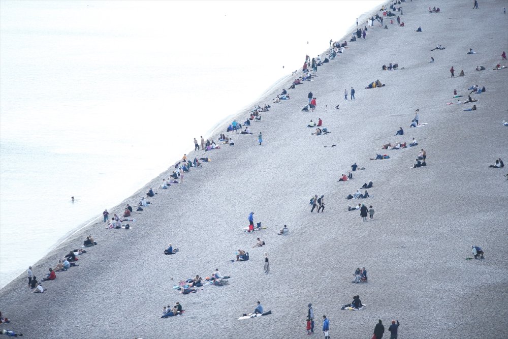 Antalya'da yılın ilk hafta sonunda etkili olan güneşli havayı değerlendirmek isteyenler sahilleri doldurdu.