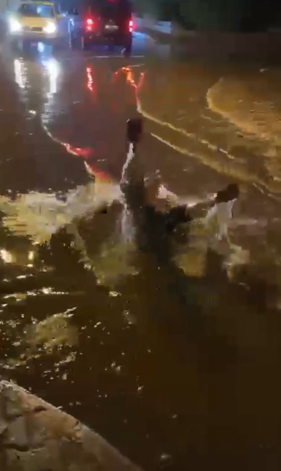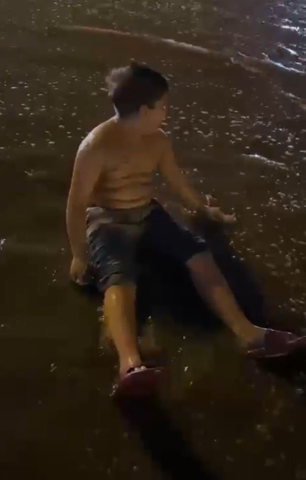 Antalya Valiliğinin 13.00-21.00 saatleri arasında kuvvetli gök gürültülü yağış uyarısının ardından kentte öğleden sonra yağmur hakim oldu. Akşam saat 19.00 sıralarında aniden bastıran sağanak Antalyalıları neye uğradığını şaşırttı. Yaz boyunca aşırı sıcaklarla boğuşan kent sakinleri, yaklaşık 2 aydır hasretle bekledikleri yağmuru sevinçle karşıladı. Kısa süren ancak etkili olan sağanakta yolların su ile dolduğunu gören Antalyalılar, su birikintisine girip doyasıya eğlendi. O anlar bir vatandaşın cep telefonu kamerasına yansıdı.