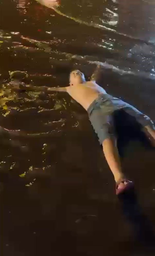 Antalyalılar Sağanak Sonrası Su Birikintisinin İçinde Eğlendi