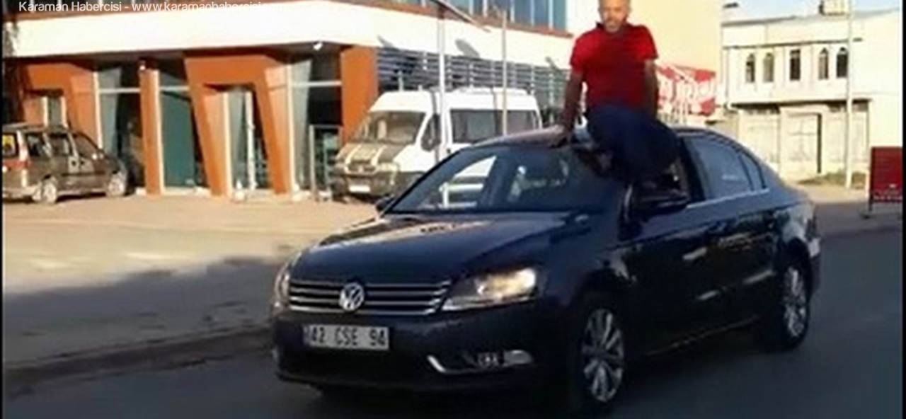 Olay, geçtiğimiz Pazar günü saat 18.00 sıralarında merkez Karatay ilçesi Kudüs Caddesi üzerinde meydana geldi. Seyir halindeyken camdan araç üzerine çıkarak tavanına oturup direksiyonu ayaklarıyla kontrol eden sürücüyü gören vatandaşlar cep telefonuyla görüntü çekerek sosyal medyada paylaştı. Görüntülendiği fark eden sürücü de aracını bu şekilde kullanmaya devam etti. Görüntünün sosyal medyada yayınlanmasının ardından İl Emniyet Müdürlüğü Trafik Denetleme Şubesi ekipleri sürücüyü tespit etmek için çalışmalara başladı. Ekiplerin çalışması sonucu otomobilin sürücüsünün S.Ç. olduğu tespit edildi. S.Ç’ye Karayolları Trafik Kanunu madde 47/1D trafik güvenliğini tehlikeye düşürmek, madde 73 saygısızca araç kullanmak, madde 78/1A seyir halindeyken emniyet kemeri takmamak ve madde 65/1G(2) araç dışına yolcu bindirmek maddelerinden toplam 2 bin 158 TL trafik para cezası uygulandı. Para cezası tebliğ edilen S.Ç’nin, TCK’nın 179/2 maddesi gereğince işlem yapılmak üzere Köprübaşı Polis Merkezi Amirliğine teslim edildiği bildirildi.