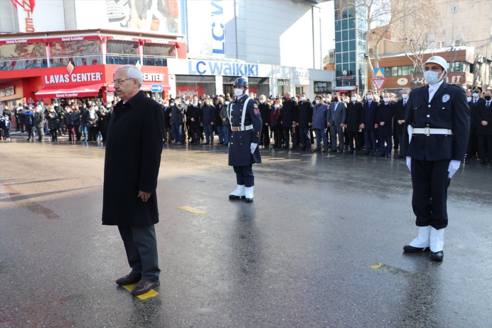 Cumhuriyet Meydanı'ndaki törende, Valilik ve Belediye çelenkleri Atatürk Anıtı'na sunuldu.