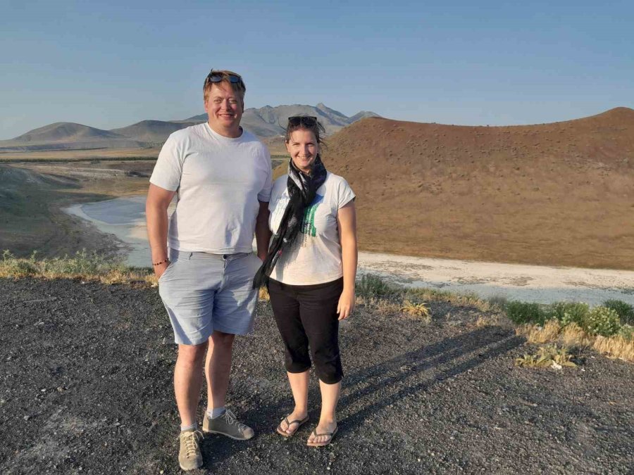 Avusturya'dan yola çıkan biyolog Judith Wenzina ve eşi Christian Höfer, karavanlarıyla çıktıkları dünya turu kapsamında Türkiye'ye geldi. Türkiye'de 16 gün kalmayı planlayan çift, Konya'nın Karapınar ilçesinde bulunan Meke Gölü'nde kamp yaparak mola verdi.