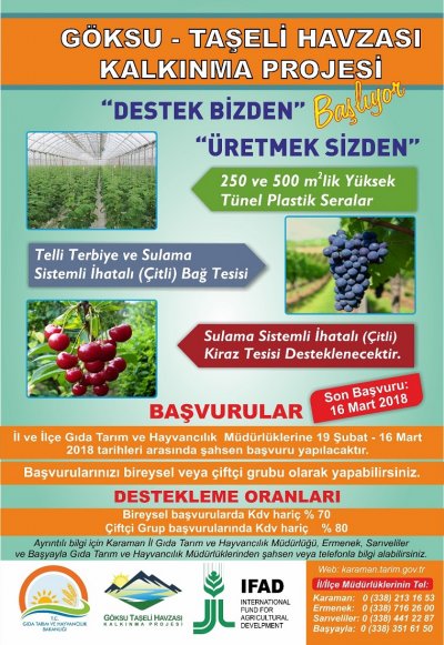 Göksu Taşeli Havzası Kalkınma Projesi kapsamında, 2018 yılı için 1. Hibe çağrı dönemi başlamıştır.