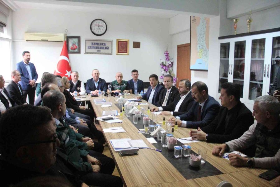 Bakan Çavuşoğlu, afetlerin olabileceğini belirterek, bu gibi durumların yaşanmaması için dersler çıkarıldığını ve gereken tedbirleri aldıklarını ifade etti. Demre ilçesinde de incelemelerde bulunduğunu anlatan Çavuşoğlu, "Vatandaşlarımız orada memnun, dar olan bölgenin açılması için bölgeye iş makineleri bölgeye intikal ediyor. Önümüzdeki kış sel felaketi yaşanmaması derelerin taşmaması için gerekli tedbirleri arkadaşlarımız alıyor. Çiftçilerimizin durumunu Cumhurbaşkanımıza arz ettik. Can suyu, gerek TARSİM gerek devletin göndereceği katkıyla çiftçilerimizi rahatlatacak adımları atacağız. 3 ilçede vatandaşlarımızın yanında olmaya devam edeceğiz" açıklamasında bulundu.