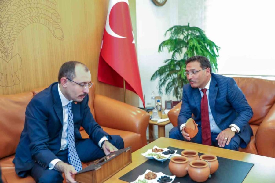 Ticaret Bakanı Mehmet Muş, Kayseri Valisi Gökmen Çiçek'i makamında ziyaret etti.