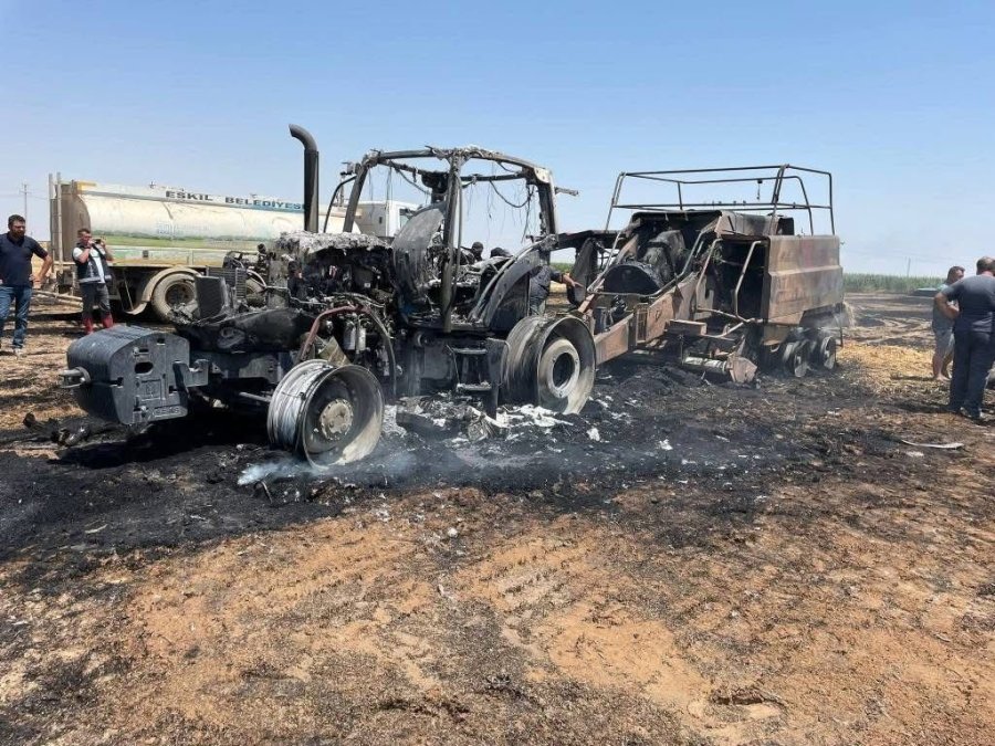 Yangın, saat 11.30 sıralarında Aksaray'ın Eskil ilçesine bağlı Mezgitli Yaylası'ndaki tarım arazisinde çıktı. Edinilen bilgiye göre, traktörün arkasına bağlı olan balya makinesi bilinmeyen bir nedenden yanmaya başladı. Alevler kısa sürede büyüyerek traktöre sirayet ederken, traktör ve balya makinesi alevlere teslim oldu. Rüzgarın etkisiyle alevler tarım arazisindeki anızlara da sıçradı. Yangın itfaiye ekiplerince söndürülürken, 1 traktör ile 1 balya makinesi demir yığınına dönerek kullanılamaz hale geldi. Yangında yaklaşık 3 dekarlık arazideki anızlar da yandı. İtfaiye ekipleri inceleme yaparken, yangının çıkış nedeni araştırılıyor.