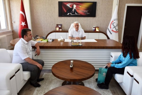 Abdullah Tayyar Anadolu Lisesi 9.sınıf öğrencisi Esra Coşar, Okul Müdürü Abdülkadir Ünüvar ile birlikte İl Milli Eğitim Müdürü Mevlüt Kuntoğlu’nu ziyaret etti.