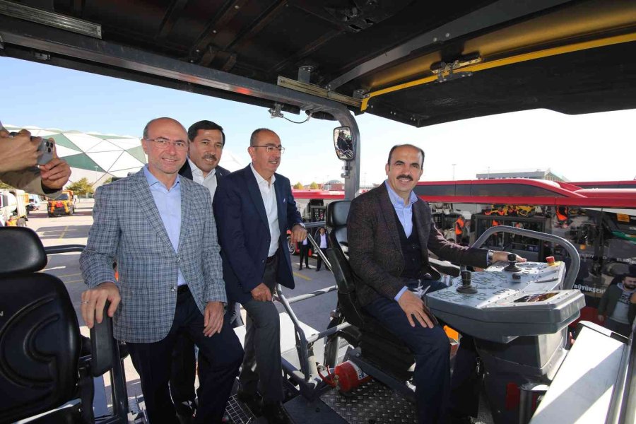 Konya Büyükşehir Belediye Başkanı Uğur İbrahim Altay, Büyükşehir Belediyesi olarak şehir genelindeki hizmetlerde kullanılmak üzere alımı yapılan araçların tanıtımını yaptı.