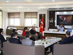 15-22 Nisan Turizm Haftası nedeniyle İl Turizm Müdürü Abdullah Kılıç ve Karaman’da hizmet veren Turizm ve Otel işletmecilerinin temsilcileri, Belediye Başkanı Ertuğrul Çalışkan’ı makamında ziyaret etti.