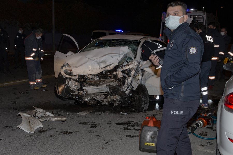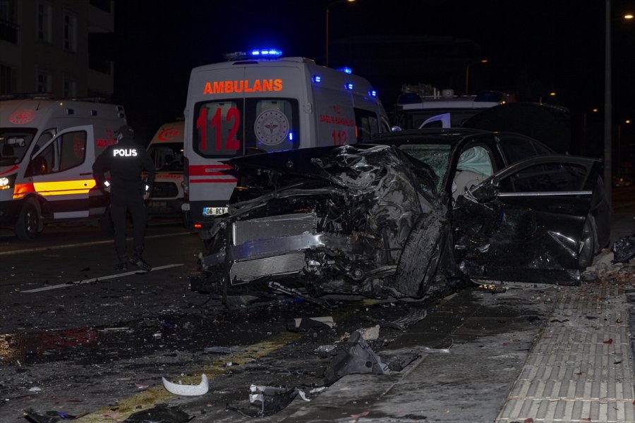 Çarpışmanın şiddetiyle Batıkan Y'nin aracı kaldırıma çıkarak bir sitenin duvarına çarptı, her iki aracın parçaları metrelerce uzağa savruldu.
