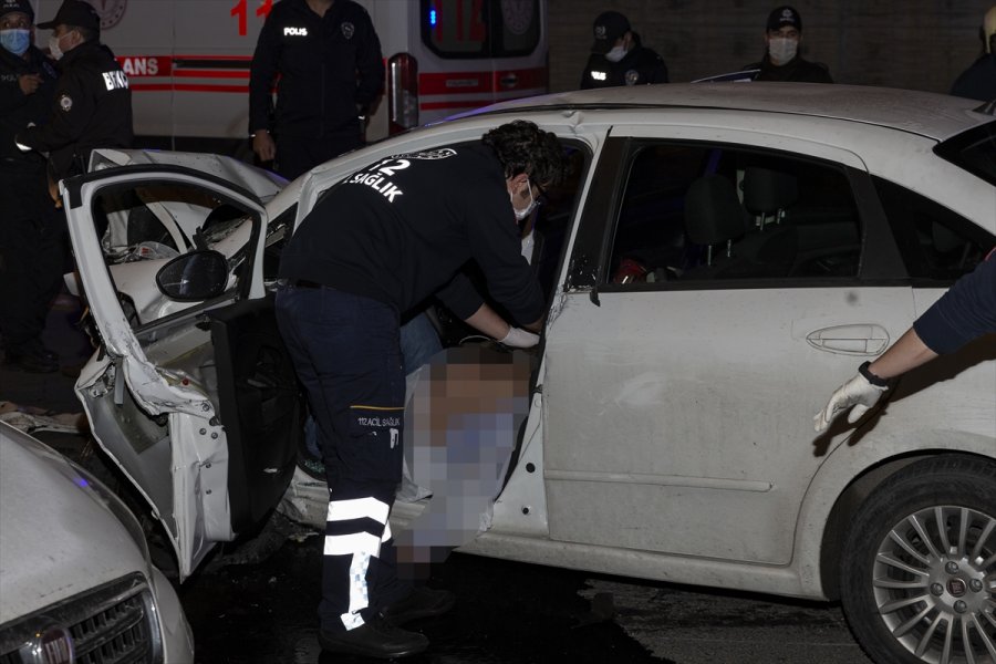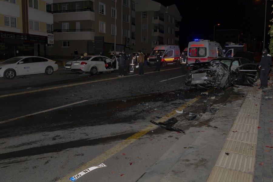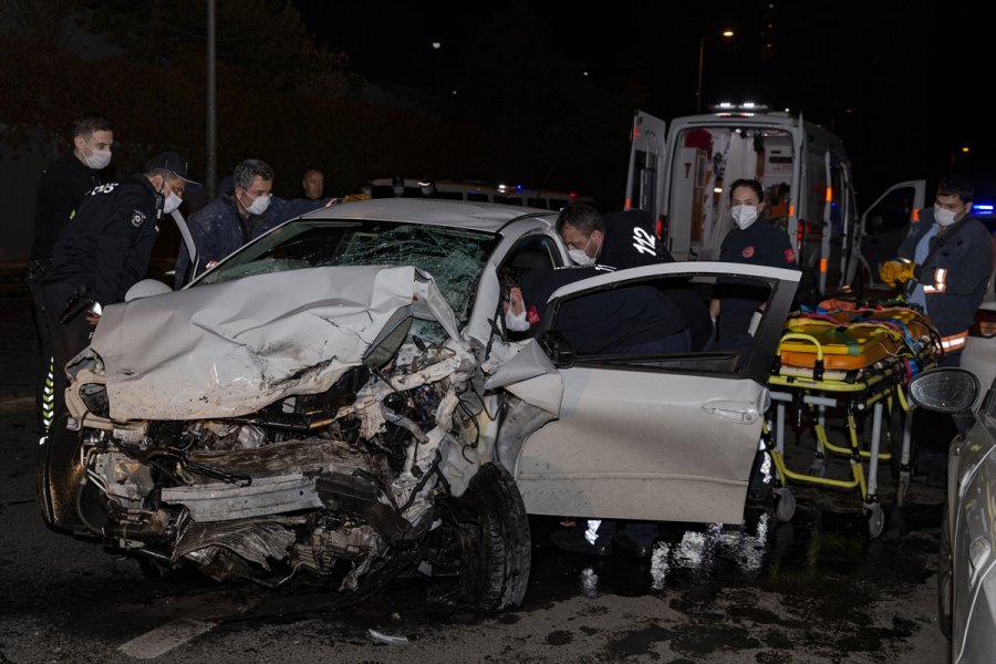 Ankara'nın Çankaya ilçesinde iki otomobilin çarpışması sonucu 1'i ağır 5 kişi yaralandı.