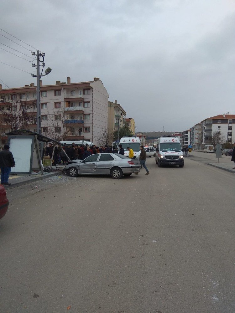 Alınan bilgiye göre, Sincan ilçesi Vural Baylan Bulvarı Korkmaz Caddesi kavşağında Ö.B. idaresindeki 06 ZKN 55 plakalı araç ile A.H.S. idaresindeki 06 BOM 402 plakalı otomobil kavşakta çarpıştı. Çarpışmanın etkisiyle savrulan 06 BOM 402 plakalı araç, yolun sağında bulunan otobüs durağına çarptı. Kazada durakta otobüs bekleyen Ahmet Ç. (28) ve Burak A. (24) yaralandı. Çevredeki hastanelere kaldırılan yaralıların hayati tehlikelerinin olmadığı öğrenildi.