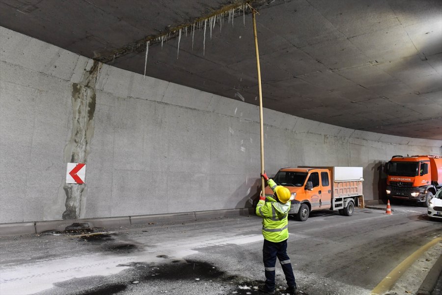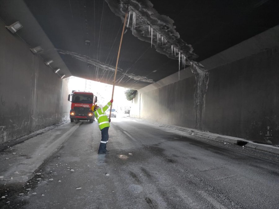 Ankara Büyükşehir Belediyesi, kar yağışının ardından yaşanan soğuk hava nedeniyle oluşan buz sarkıtlarına saha ekipleriyle müdahale ediyor.
