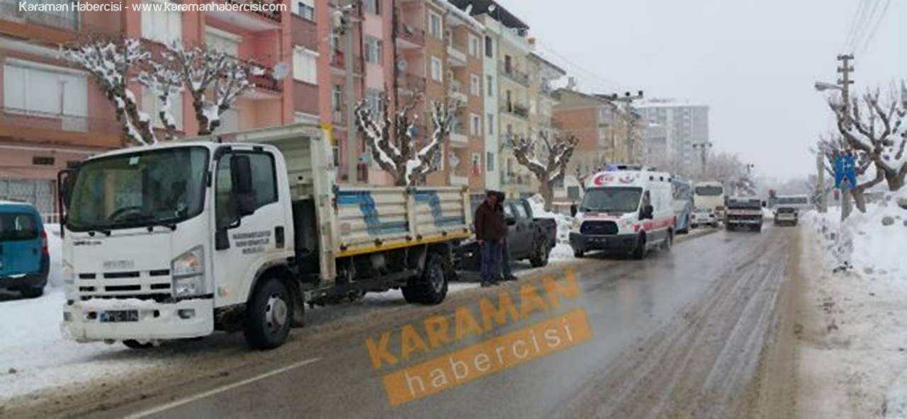 Dün meydana gelen kazada Karaman Belediyesine ait kamyon Atatürk Caddesinden Molla Fenari Caddesine döndüğü sırada arka kapağı açıldı.