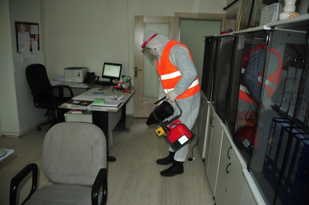 Belediye Ekipleri Büroları Dezenfekte Ediyor