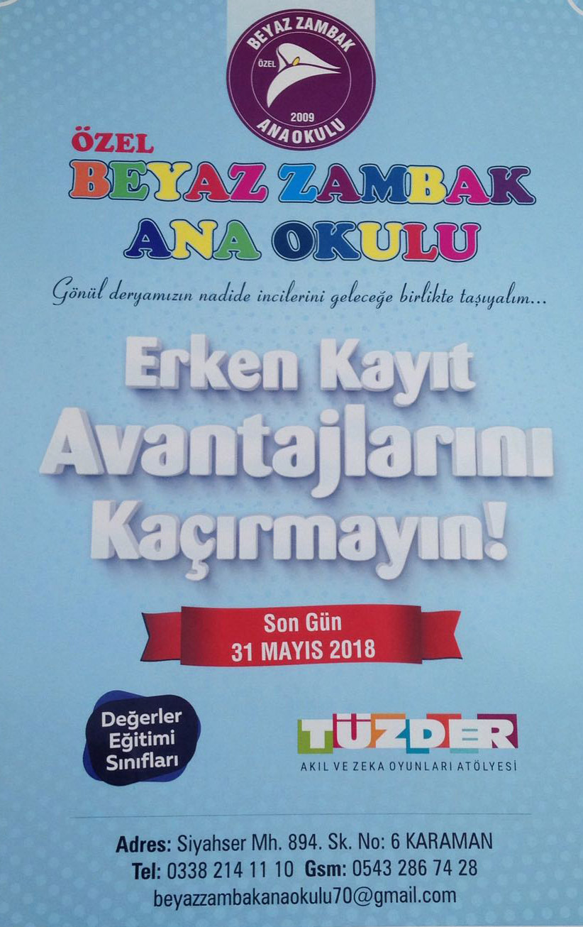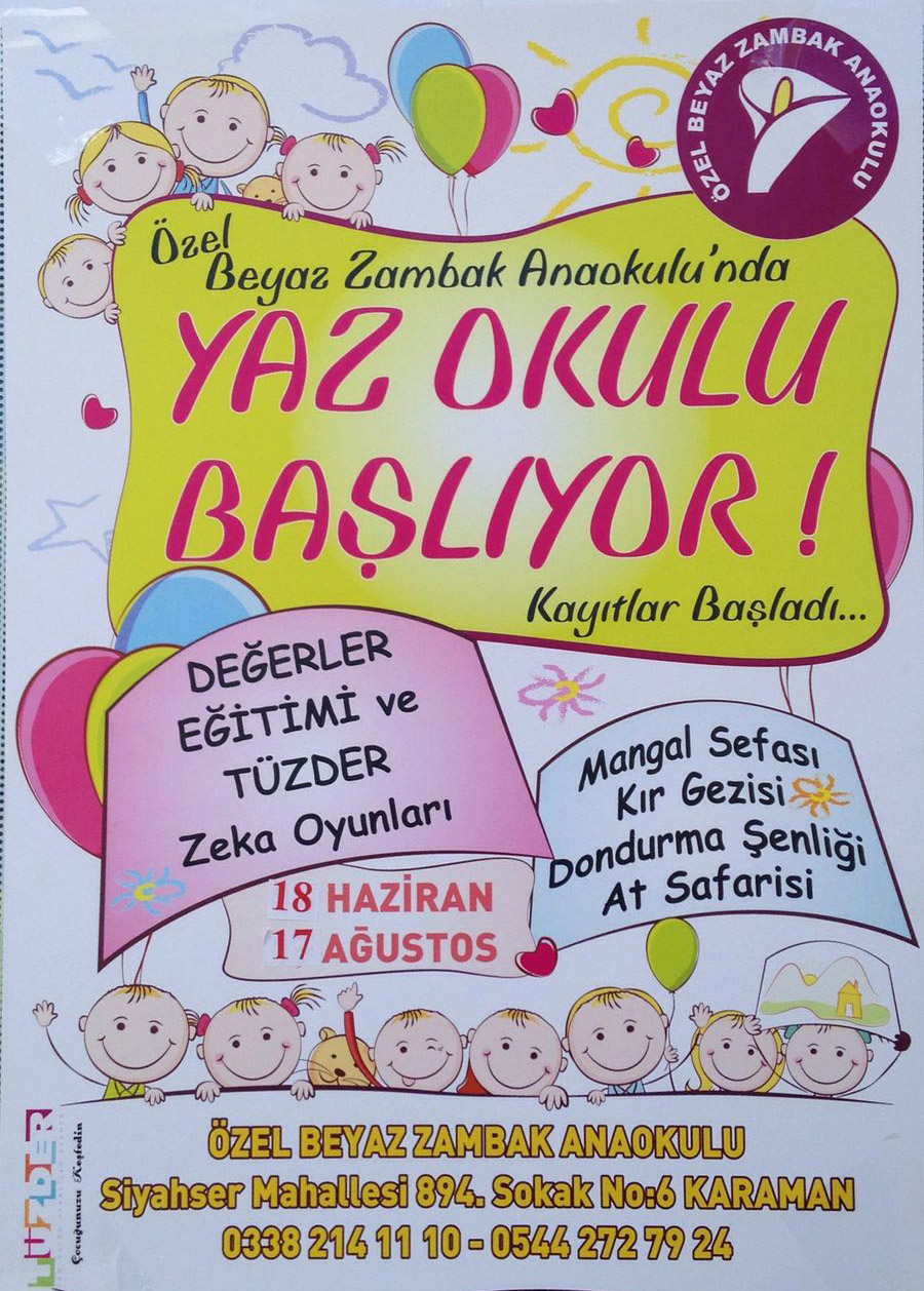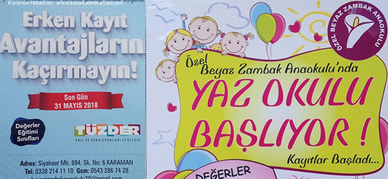 Karaman Özel Beyaz Zambak Anaokulu erken kayıt avantajları ve yazokulu programı belli oldu.