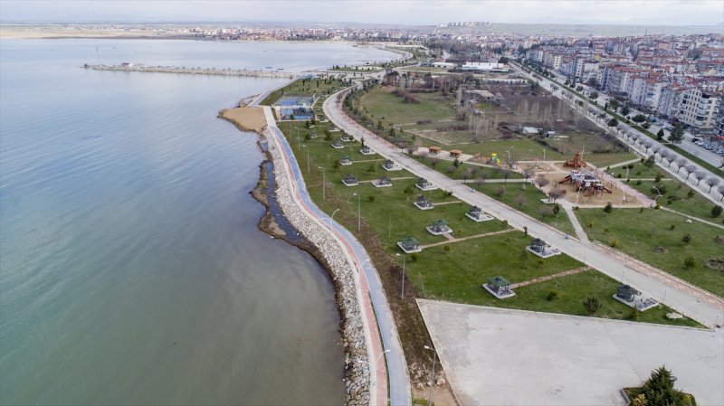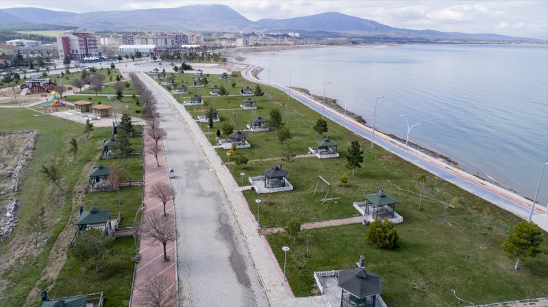 Öte yandan, Beyşehir Belediyesi'nce, sessizliğe bürünen göl kıyıları ve parklar da havadan görüntülendi.