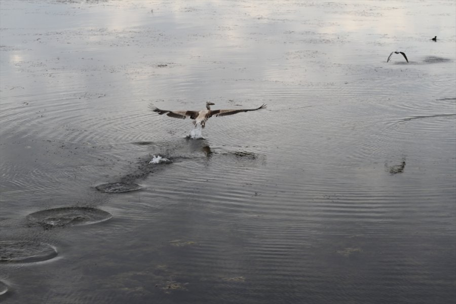 Konya'nın Beyşehir ilçe merkezinde, gezinti yatlarının bulunduğu kıyı kesimlerde sonbahar mevsiminin son günlerinde görülen pelikan, tatlı sularda beslenirken ve kanat çırparken gören herkesin ilgisini çekiyor.