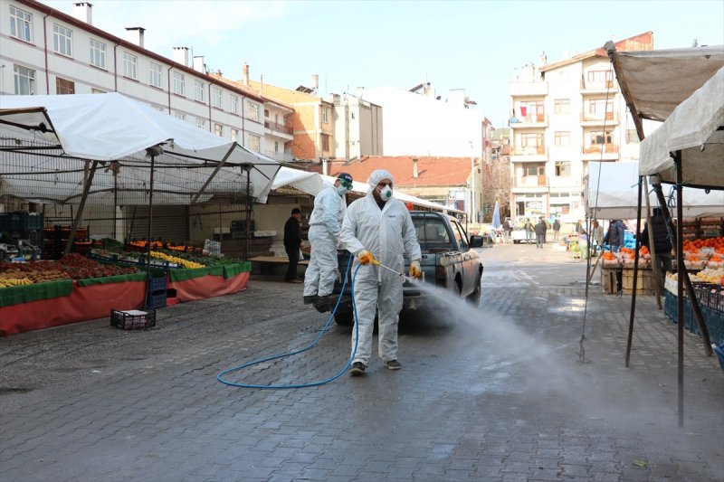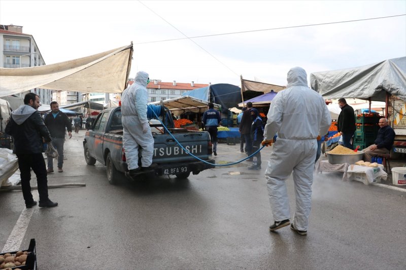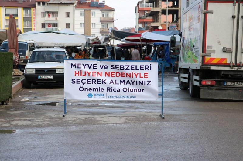 Beyşehir Belediyesi'nden yapılan yazılı açıklamada, belediye ekiplerinin gıda pazarı kurulan hal içindeki pazar alanı ve çevresini halk sağlığı için belli aralıklarla dezenfekte ederek koronavirüse karşı önlem alındığı hatırlatıldı.