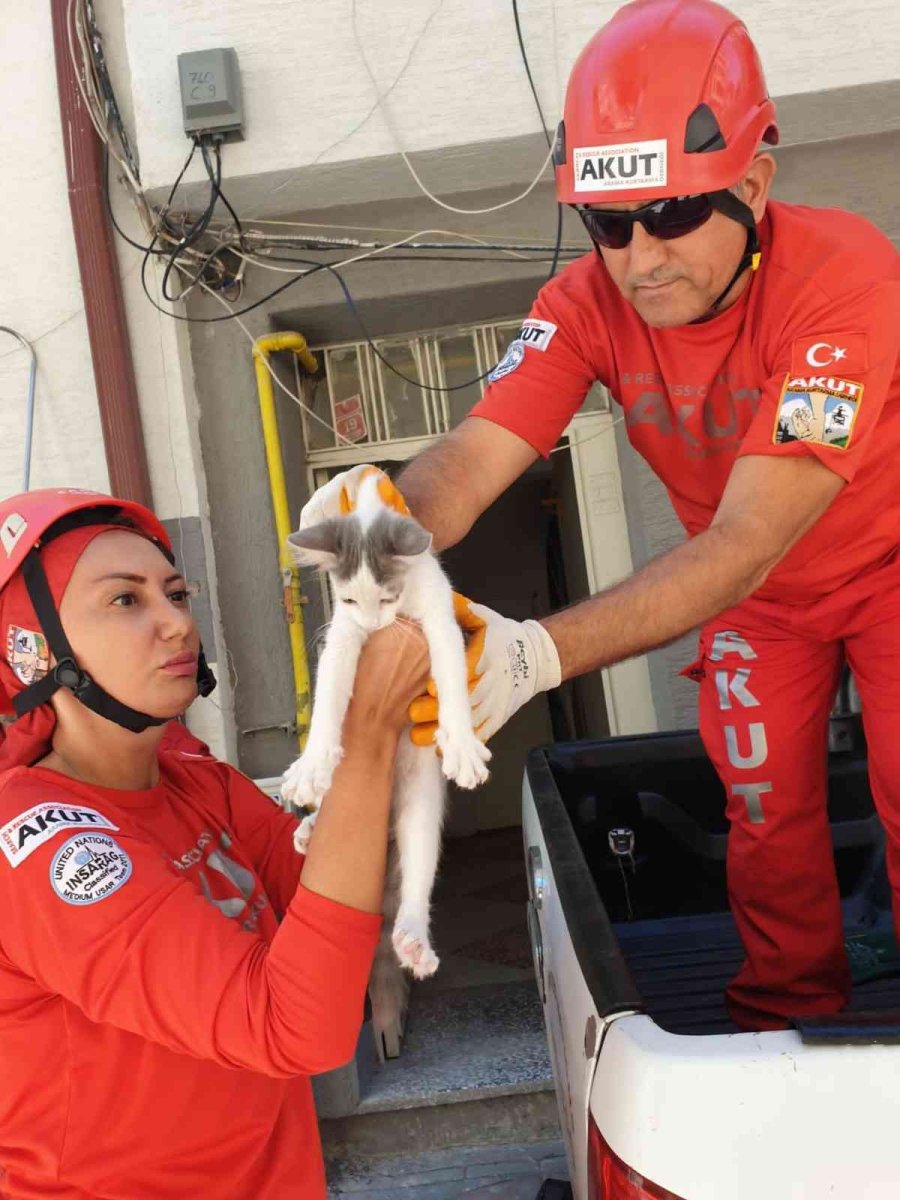 Hacı Ali Bey Mahallesi'ndeki bir apartmanın 2'nci katındaki evin penceresinin önünde bir kedi mahsur kaldı. Ev sahibinin ikamette bulunmaması üzerine bir vatandaş durumu AKUT'a bildirdi. Olay yerine giden 6 AKUT gönüllüsü ve 2 araç gönderildi. Binaya merdiven dayayarak pencereye tırmanan ekip, 2 saatlik çabanın ardından kediyi bulunduğu yerden indirdi. Sağlık durumunun iyi olduğu öğrenilen kedi sahibine teslim edildi.