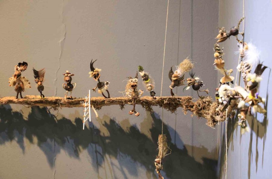 Mersin'de okul öncesi öğretmeni Işıl Ademoğlu, çeşitli bitkilerden yaptığı heykelleri sanatseverlerle buluşturdu.