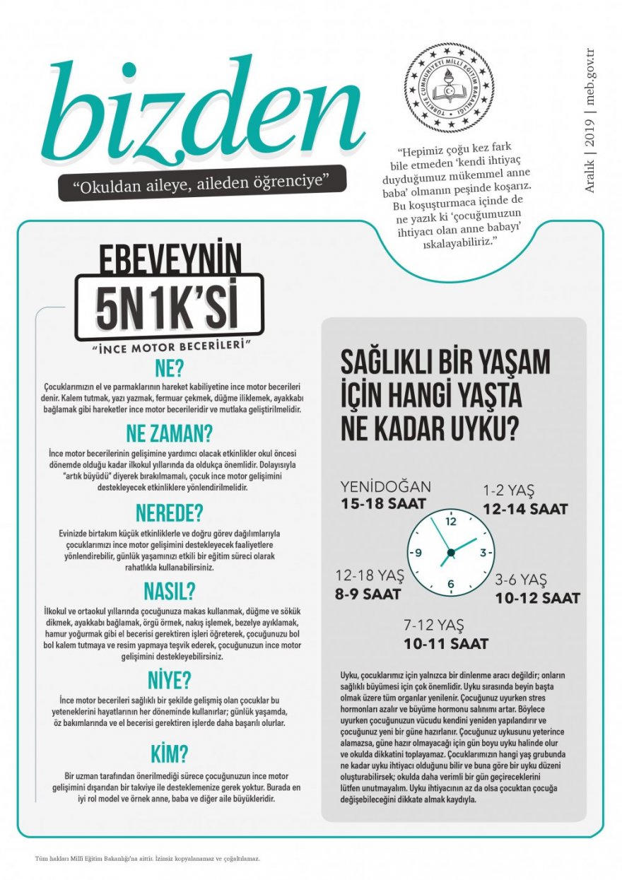 Bülten içeriğinden bahseden İl Müdürü Çalışkan, "Bakanlığımızın 'BİZDEN' bülteninde bilişim teknolojileri ile medya araçlarının güvenli kullanımı ve uyku saatleri konularında velilere tavsiyelerde bulunuldu. Evlerin okul dışında öğrencinin iyi vakit geçireceği, paylaşımların yoğun olarak yaşandığı mekânlar olması sebebiyle arzulanan nesillerin yetişmesi için bizler velilere tavsiyelerde bulunurken velilerimizin de önerilerine her zaman açığız. Daha iyi için velilerimizle birlikte hareket edecek, birlikte gelişeceğiz. Biz öğretmenler olarak bu sinerjiye inanıyor ve güveniyoruz." diye konuştu.