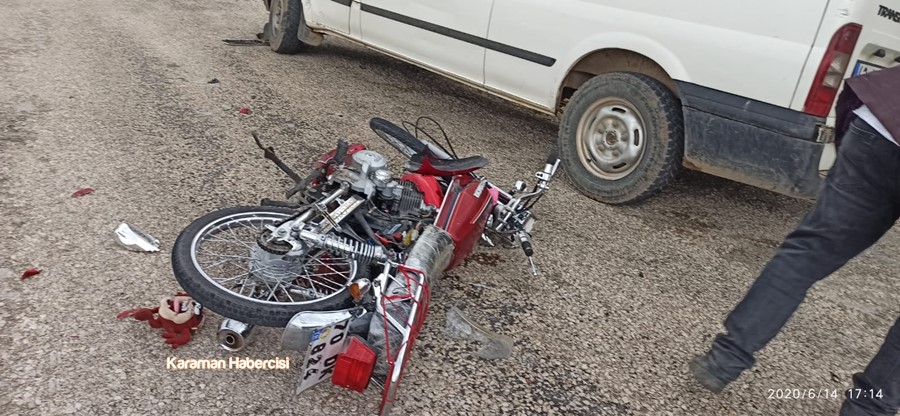 Karaman'ın merkeze uzak köylerinden Akçaalan ve Kalaba köyleri arasında motosiklet ile transitin çarpıştığı trafik kazasında motosiklet sürücüsü yaralandı.