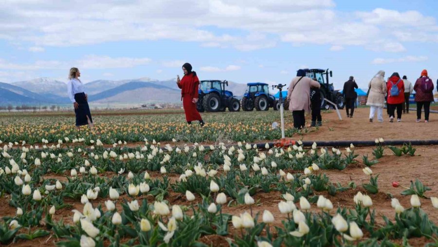 Türkiye'nin dört bir yanından gelen ziyaretçiler, lalelerle kaplı bu masalsı tarlada hem huzur buluyor hem de eşsiz kareler yakalıyor. Geçen yıl 400 bine yakın kişinin ziyaret ettiği lale tarlası, bu sene beklenen kar yağışı ve soğuk hava nedeniyle biraz sönük kalsa da, hâlâ büyüleyici güzelliğini koruyor.