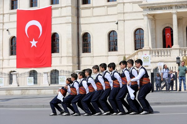 Öğrencilerin şiir okuması ve halk oyunu ekibinin gösterisinin ardından tören, öğrenci ve askerlerin geçidiyle sona erdi.