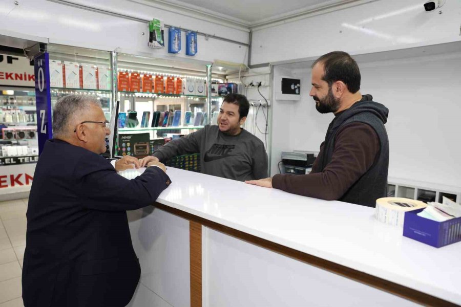 Kayseri Büyükşehir Belediye Başkanı Dr. Memduh Büyükkılıç, Hunat Çarşısı'nı ziyaret ederek, esnafla buluştu.