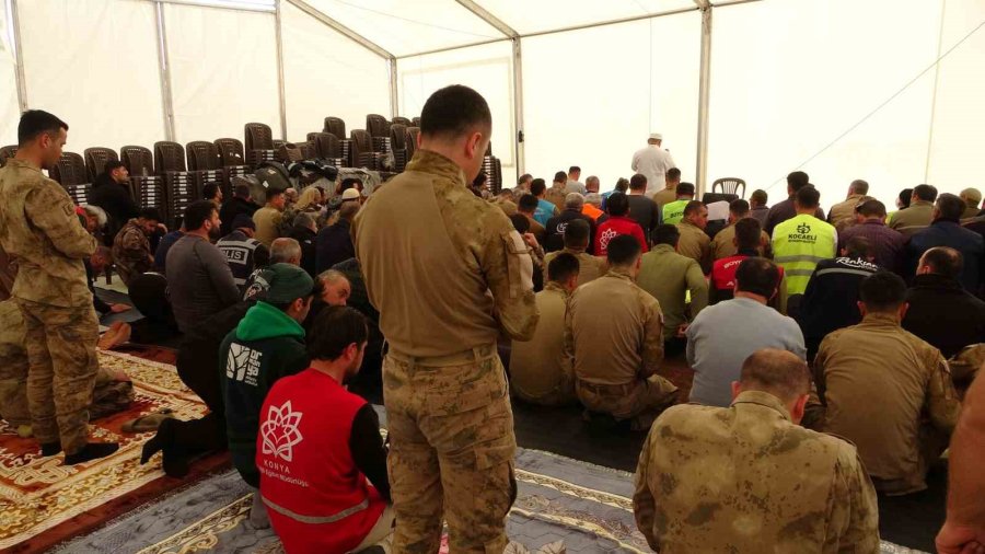 Deprem, Hatay'daki camilere büyük hasar verirken çadırkentlerde kurulan alanlarda cuma namazı idrak edildi.
