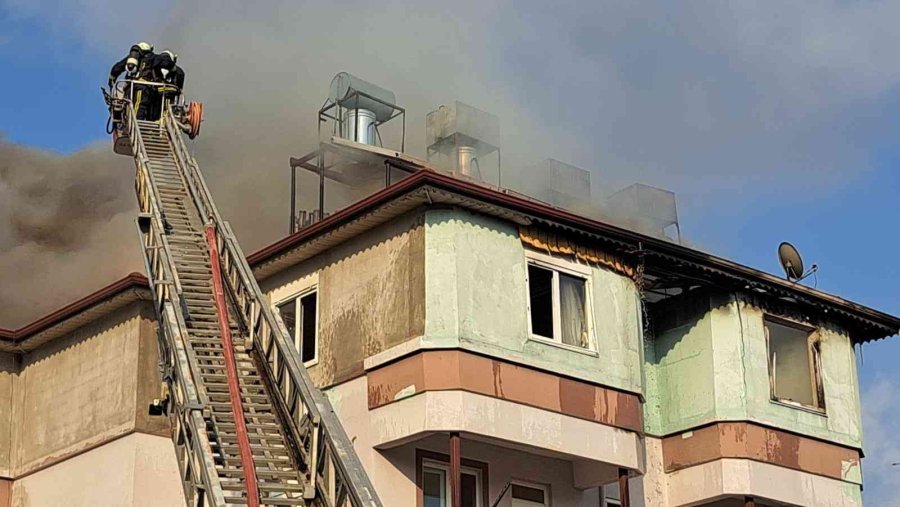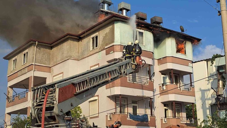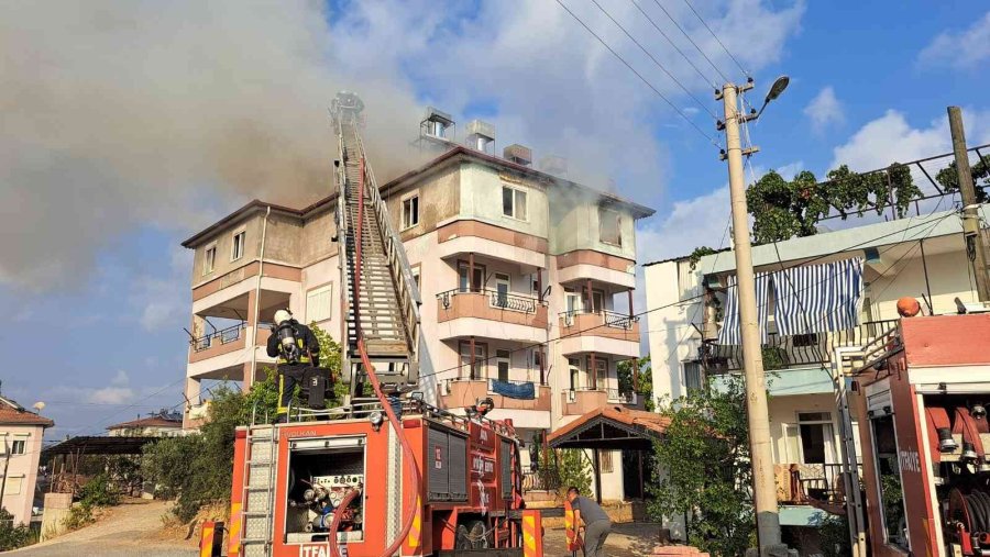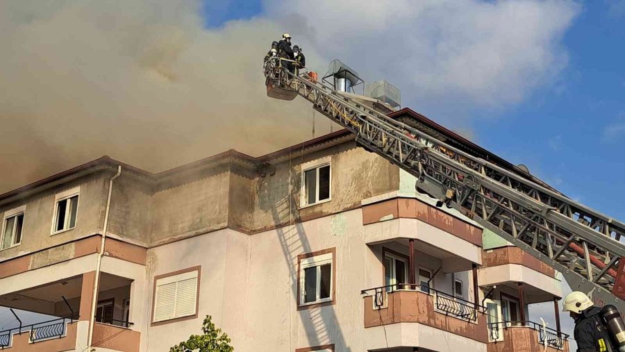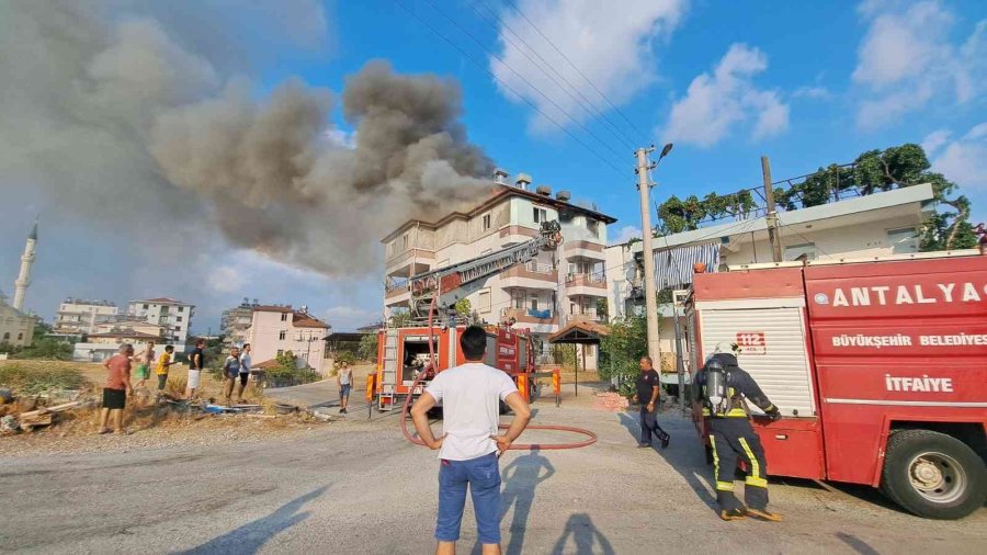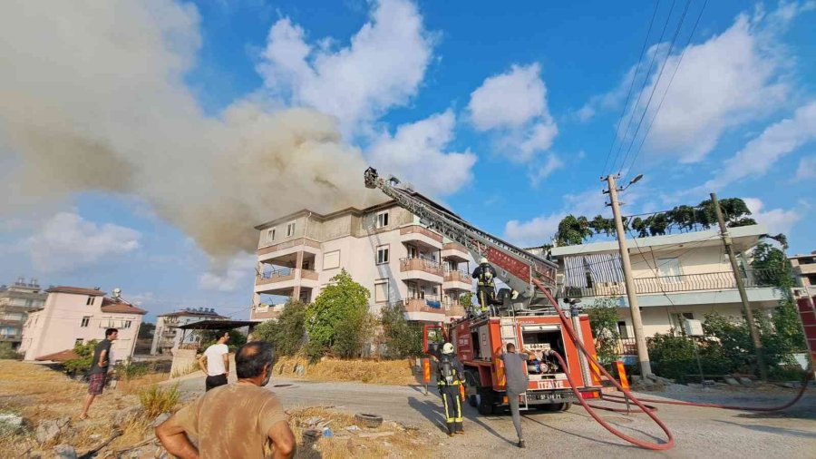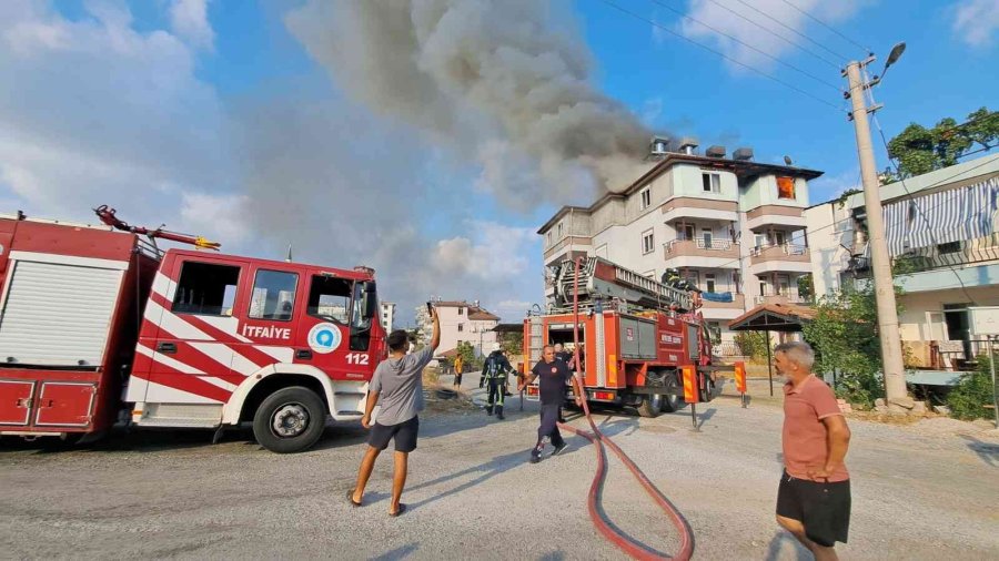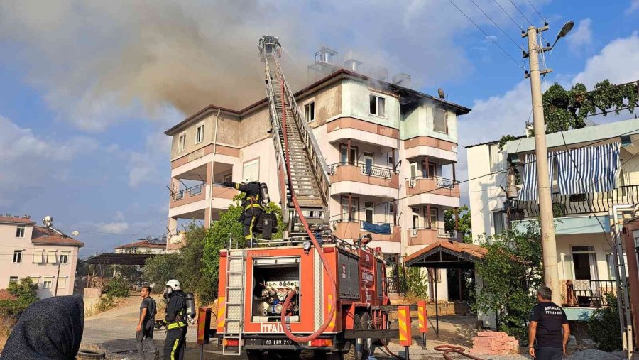 Yangın, sabah saatlerinde Salkımevler Mahallesi 10006 Sokaktaki 4 katlı apartmanın çatı katında çıktı. Evden alevlerin yükseldiğini gören vatandaşlar durumu 112 Acil Çağrı Merkezine bildirdi. İhbarla olay yerine jandarma, Antalya Büyükşehir Belediyesi'ne ait 2 itfaiye sevk edilirken, alevlerin apartmanın çatısına tamamen yayılmasıyla birlikte 2 büyük itfaiye daha gelerek yangına müdahalede bulundu. Meydana gelen yangında çatı katı dairesi ve evde bulunan eşyalar tamamen yanarak kullanılmaz hale gelirken, evde bulunan ve ilk müdahaleyi yapan Hasan Bayar ile Okan Özder isimli şahıslar dumandan etkilendikleri için hastaneye kaldırıldı.