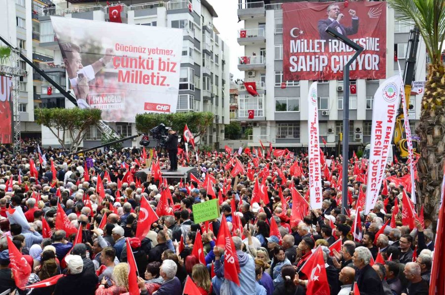 Mersin Büyükşehir Belediye Başkanı Vahap Seçer'in de konuşma yaptığı mitingde Ekrem İmamoğlu'nun mesajı da okundu.