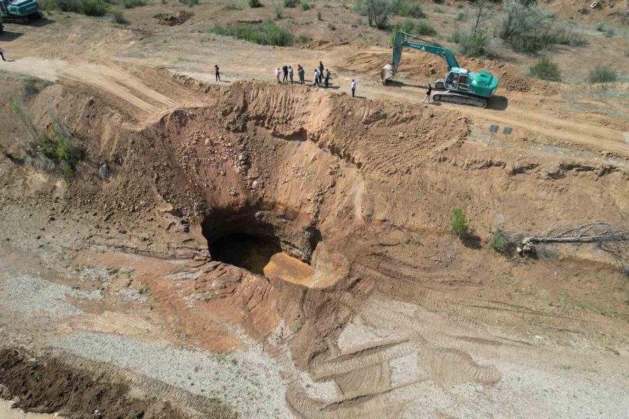 Çumra'da Obruk Sulama Kanalını Yuttu