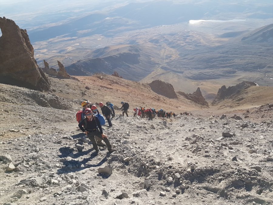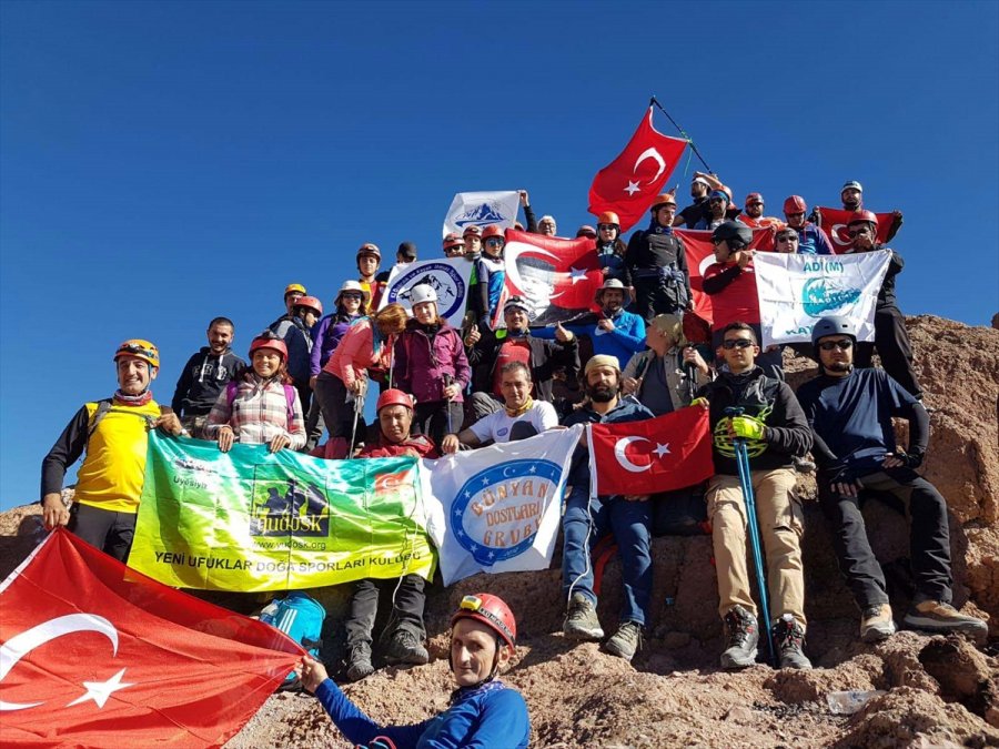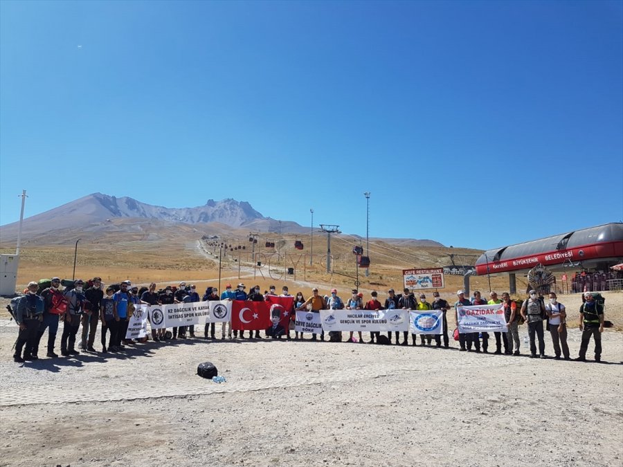 Kayseri'de dağcılar, 30 Ağustos Zafer Bayramı'nın 98. yıl dönümü dolayısıyla Erciyes Dağı'na zirve tırmanışı yaptı.